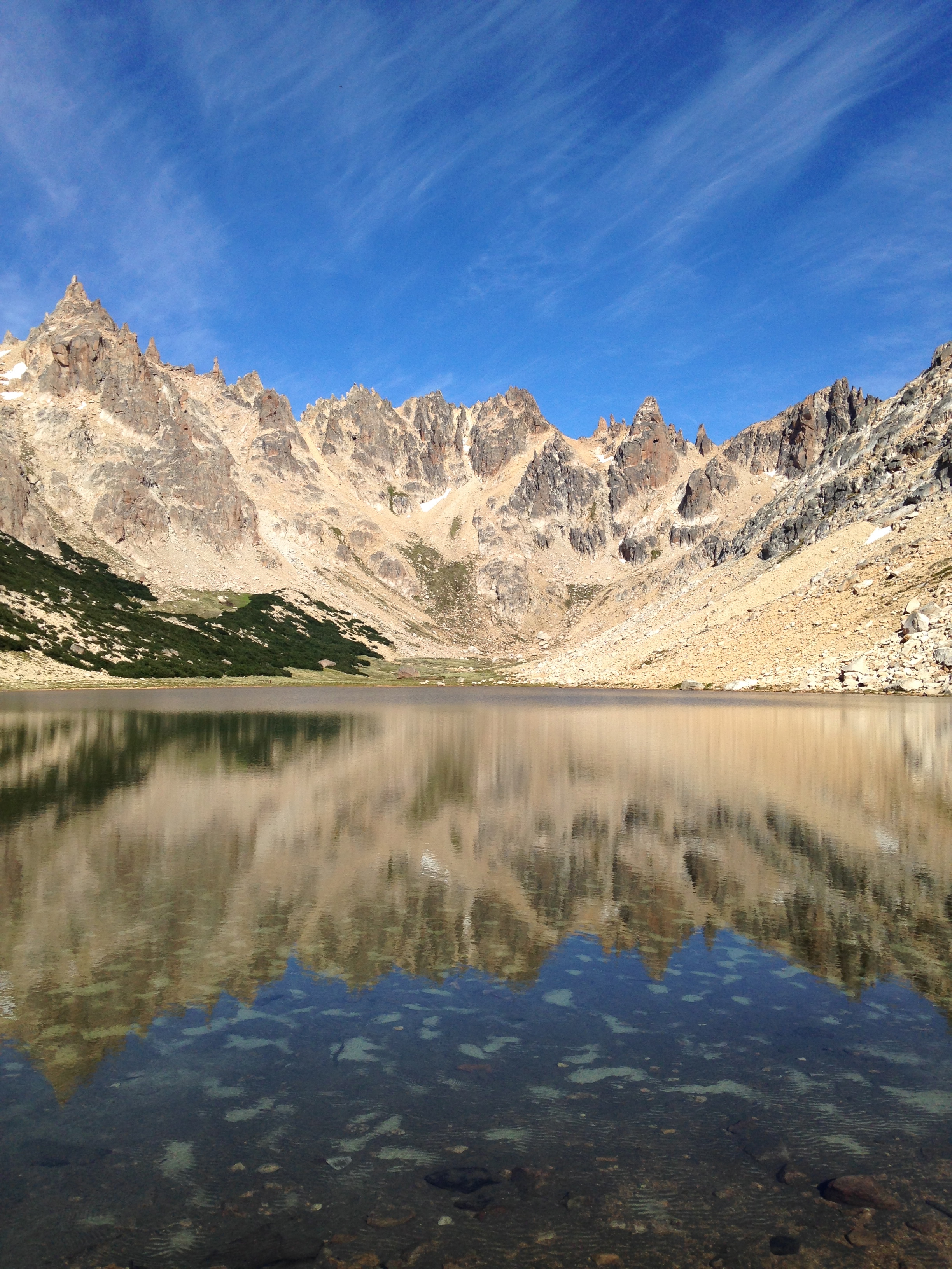 Standing in front of the lake at Refugio Frey at Cerro Catedral, Bariloche, Patagonia, Argentina